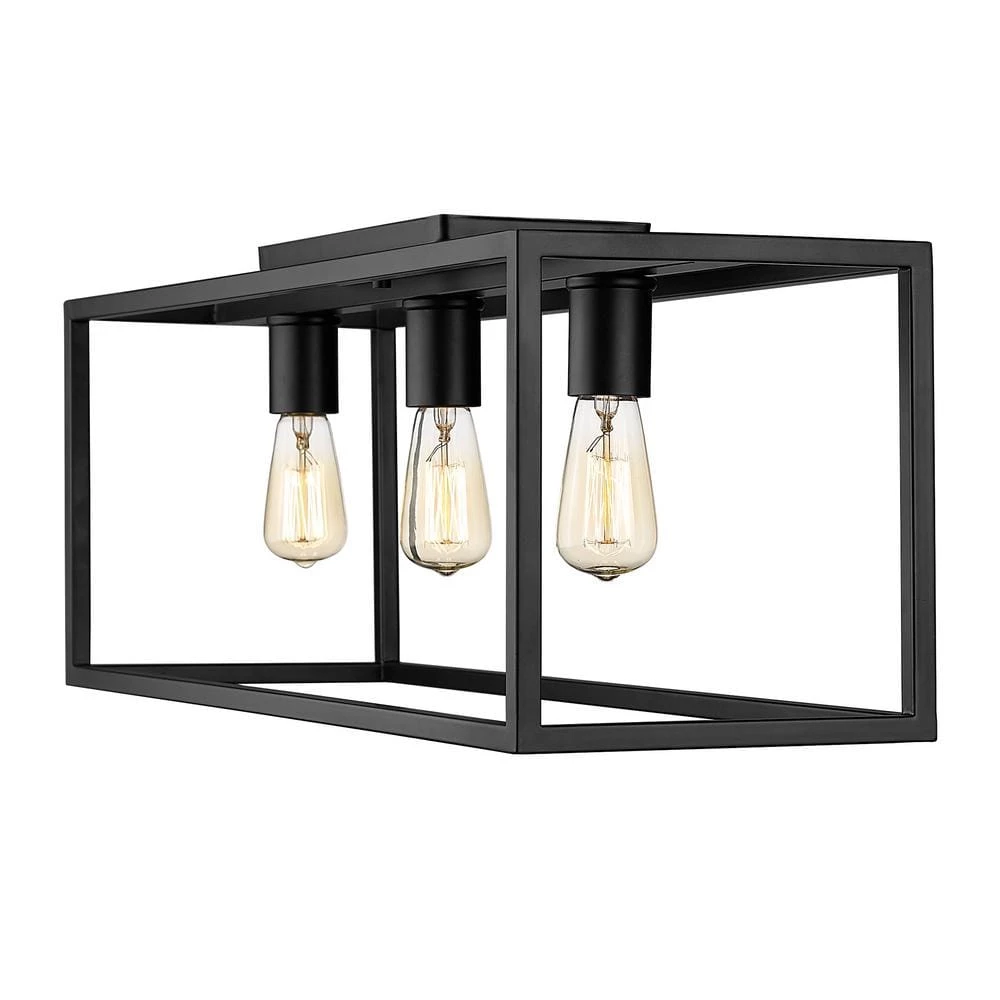 Wesson is a clean contemporary collection that is available in multiple finishes. The industrial look of the series is enhanced by exposed medium-based bulbs. A bold, square open-bottom geometric cage adds visual interest. Complete the modern, rustic look by installing Edison Bulbs. These flush mounts are generously sized for hallways and foyers.