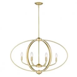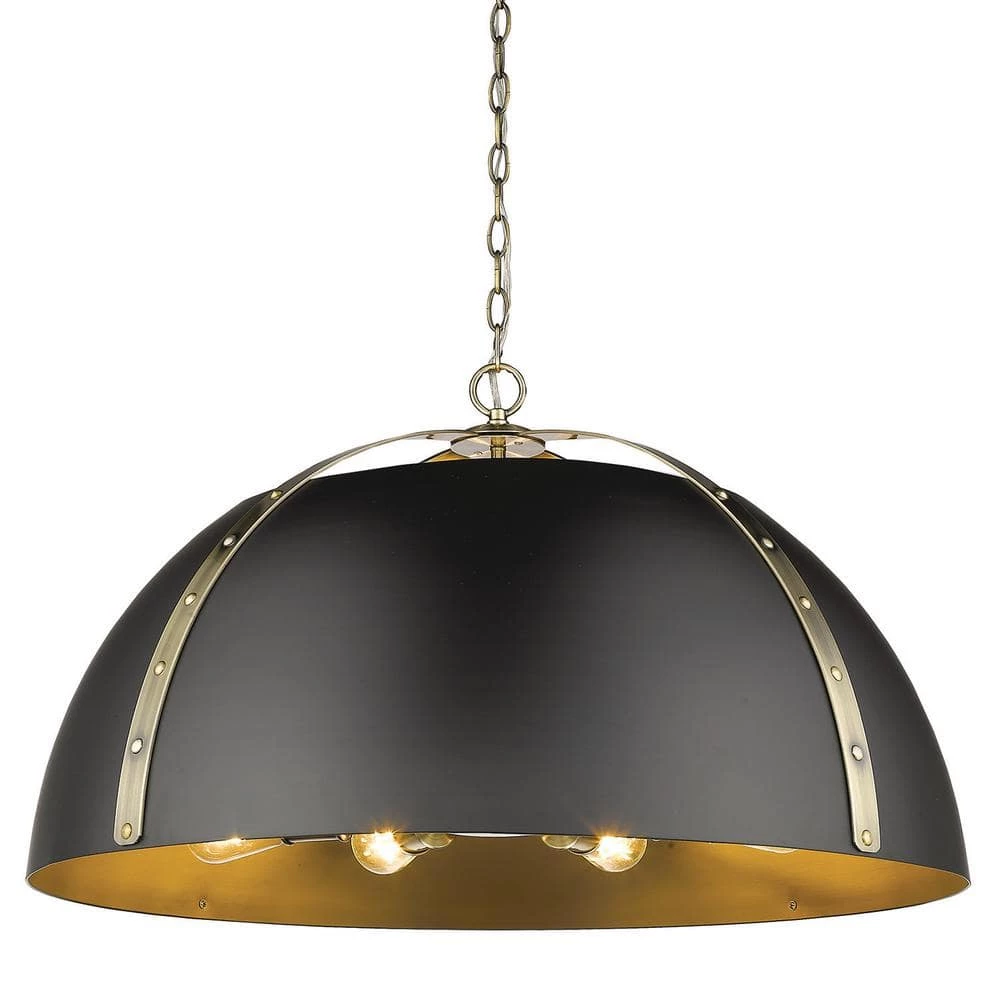 Finally, fashion meets function in a refined, oversized dome pendant with the ability to cast ample light. Aldrich is a stylish collection of industrial-inspired pendants designed to push bright ambient and task light through the tops and bottoms of metal shades. Heavy-duty rivets provide aesthetic appeal and utility, securing the matching wide steel straps to the coordinating shade. Created to complement a wide variety of interior styles, from modern to rustic, these pendants are available in multiple finish combinations. The frame is offered in 2 finishes: aged brass and pewter. Select a matte white or matte black shade to complete the look. This 8 Light pendant is graciously sized for large rooms.