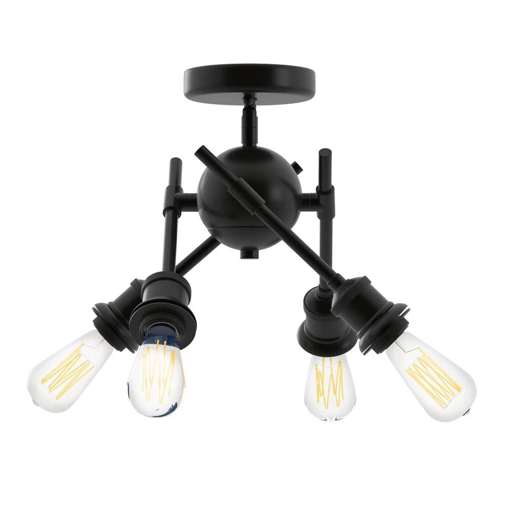 Axel is an artistic series of contemporary fixtures. Offered in two popular finishes; Matte Black and Olympic Gold with multiple glass and metal shade choices, this mid-century inspired collection features an extensive range of options. Personalize the look of the fixtures by adjusting the placement of the sputnik arms to suit your fancy. The functional, mobile arms can be positioned to spread light in all directions. This semi-flush was designed for close-to-ceiling applications.