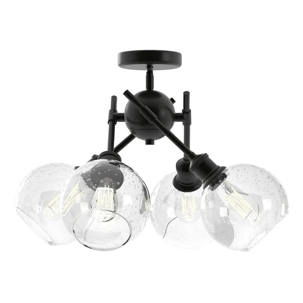 Axel is an artistic series of contemporary fixtures. Offered in two popular finishes; Matte Black and Olympic Gold with multiple glass and metal shade choices, this mid-century inspired collection features an extensive range of options. Personalize the look of the fixtures by adjusting the placement of the sputnik arms to suit your fancy. The functional, mobile arms can be positioned to spread light in all directions. This semi-flush was designed for close-to-ceiling applications.
