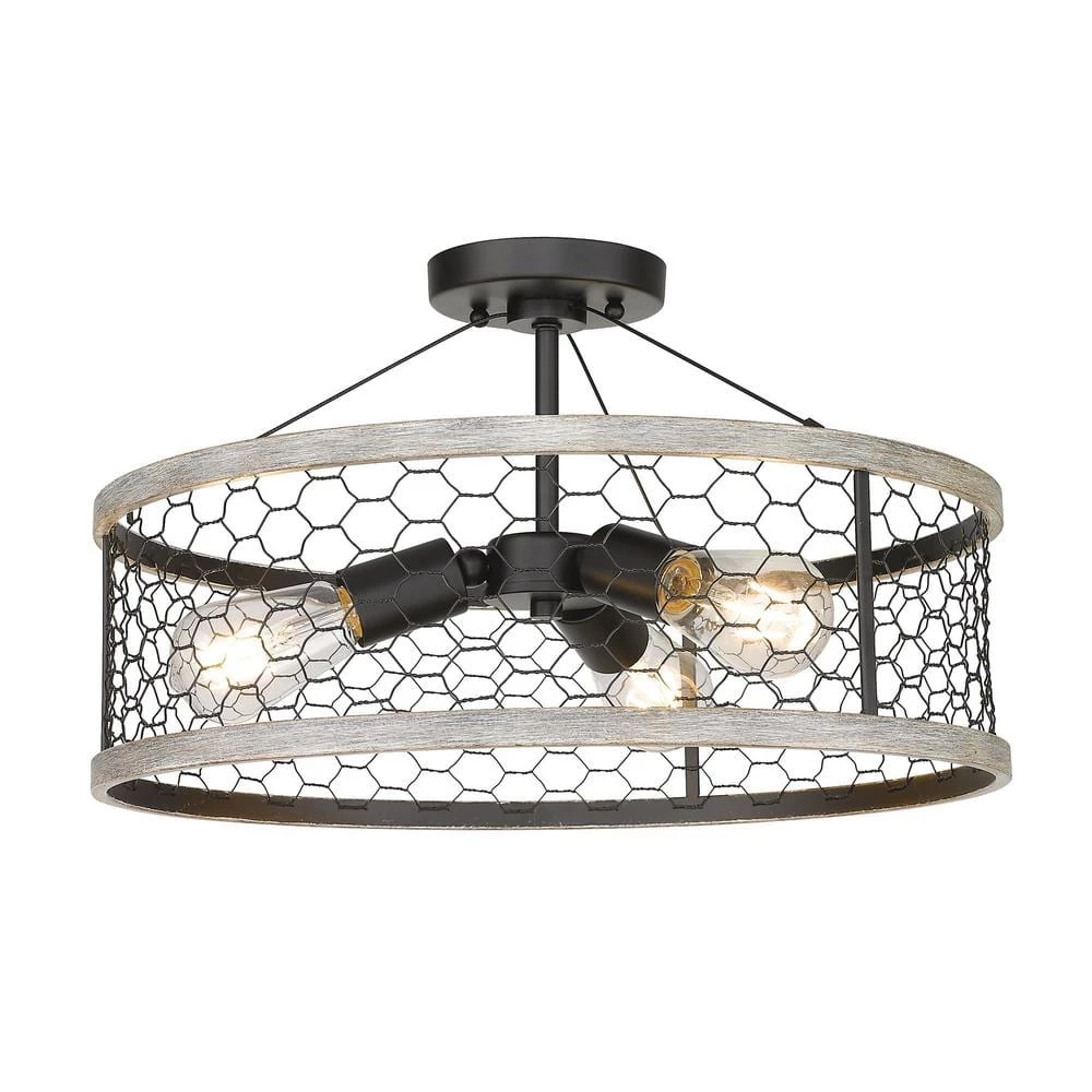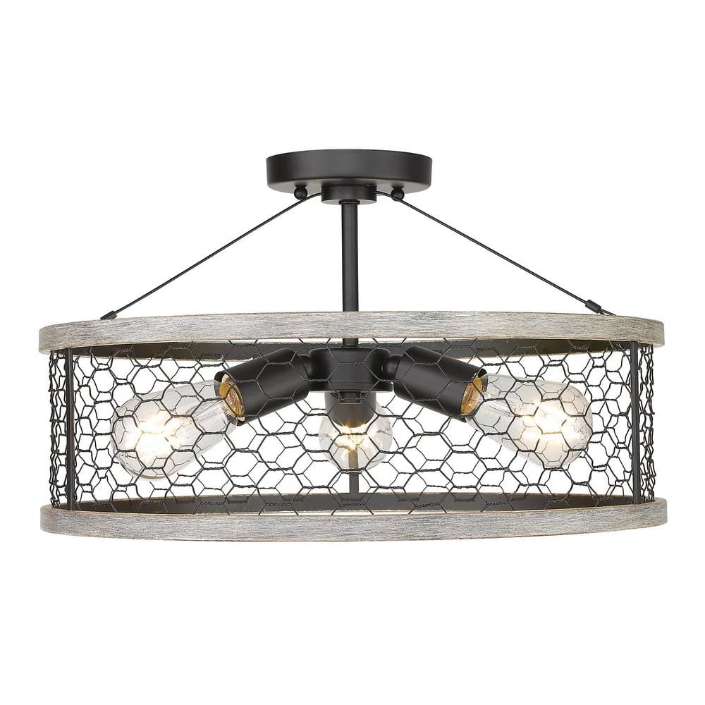 The Bailey collection brings casual, rustic styling to any space. On-trend with modern country interior design, this fixture is perfect for homes with farmhouse decor. The open bottom shade features rustic chicken wire held together by a hand-painted faux wood frame. Add a bit of country-chic style to any space including a bathroom, kitchen, living room, entry or hallway.