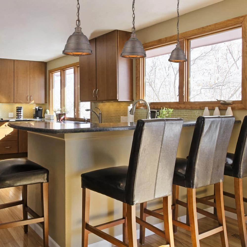 Golden Lighting’s Bartlett collection features industrial, vintage-inspired fixtures with simple, traditional silhouettes that are a nod to a bygone era. The collection features authentic details like caged diffusers and exposed hardware. The Copper Patina finish has antique Verdigris highlights. Ideal for the kitchen, the mini pendant provides soft ambient downlight, illuminating a kitchen bar or countertop without interfering with activity on the surface.