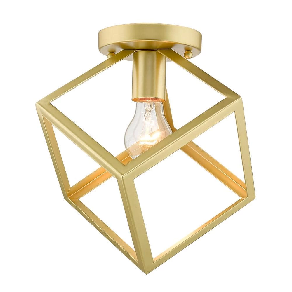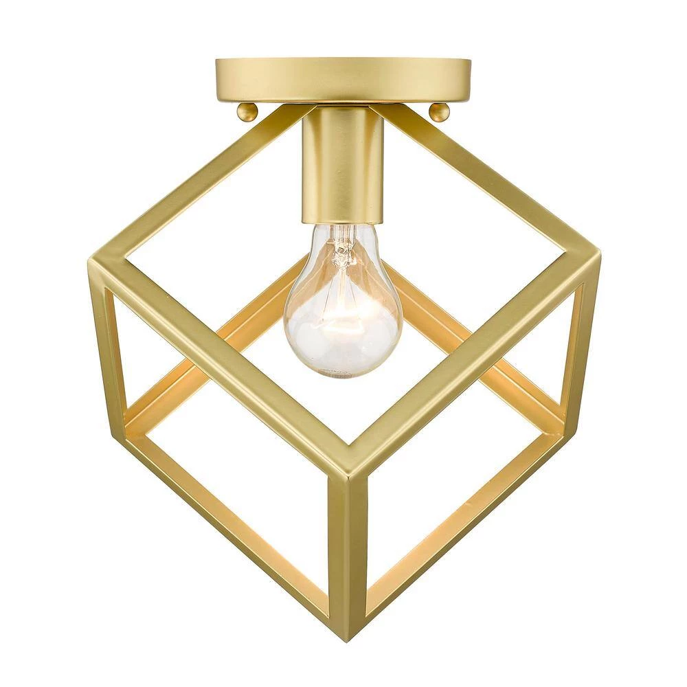 Strong, industrial lines and a unique geometric design are the basis of the Cassio series. Dramatic, double edges and bold lines make Cassio a focal point. As if frozen in space, an exposed lamp sits within a suspended 3-dimensional cube. Cassio is sure to add visual interest to any space. The open, glass-free cage lends an airy, playful tone while providing utility in the form of widespread light and easy bulb changes. Confidently hang this damp-rated fixture for ambient lighting in a bathroom, bedroom, hallway or living room.