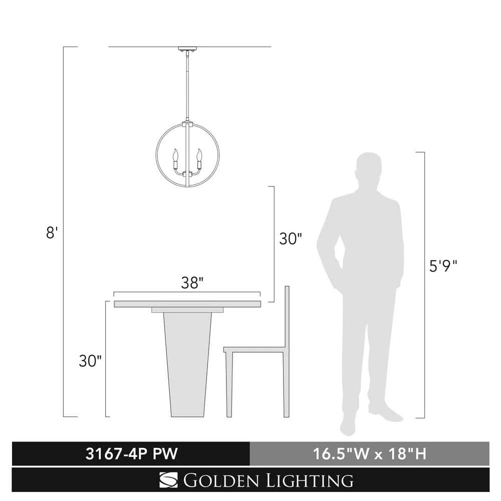 - Uses 4-E12/candelabra bulbs, 60-Watt maximum (not included)