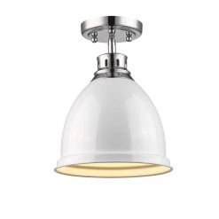 Transform the look of your room with this classic, vintage-inspired fixture by Golden Lighting. Golden Lighting’s Duncan collection is contemporary style with an industrial feel. The collection features a variety of simple, traditional silhouettes that are a nod to a bygone era. A variety of plated and painted metal shade finishes are offered in combination with durable Aged Brass, Chrome or Pewter fixture bodies. Rubbed Bronze fixtures are paired with Rubbed Bronze shades. This flush mount is UL approved for use in a bathroom, but also works perfectly in a kitchen, living room, entry, or hallway. The style is perfect for modern or contemporary home decors.