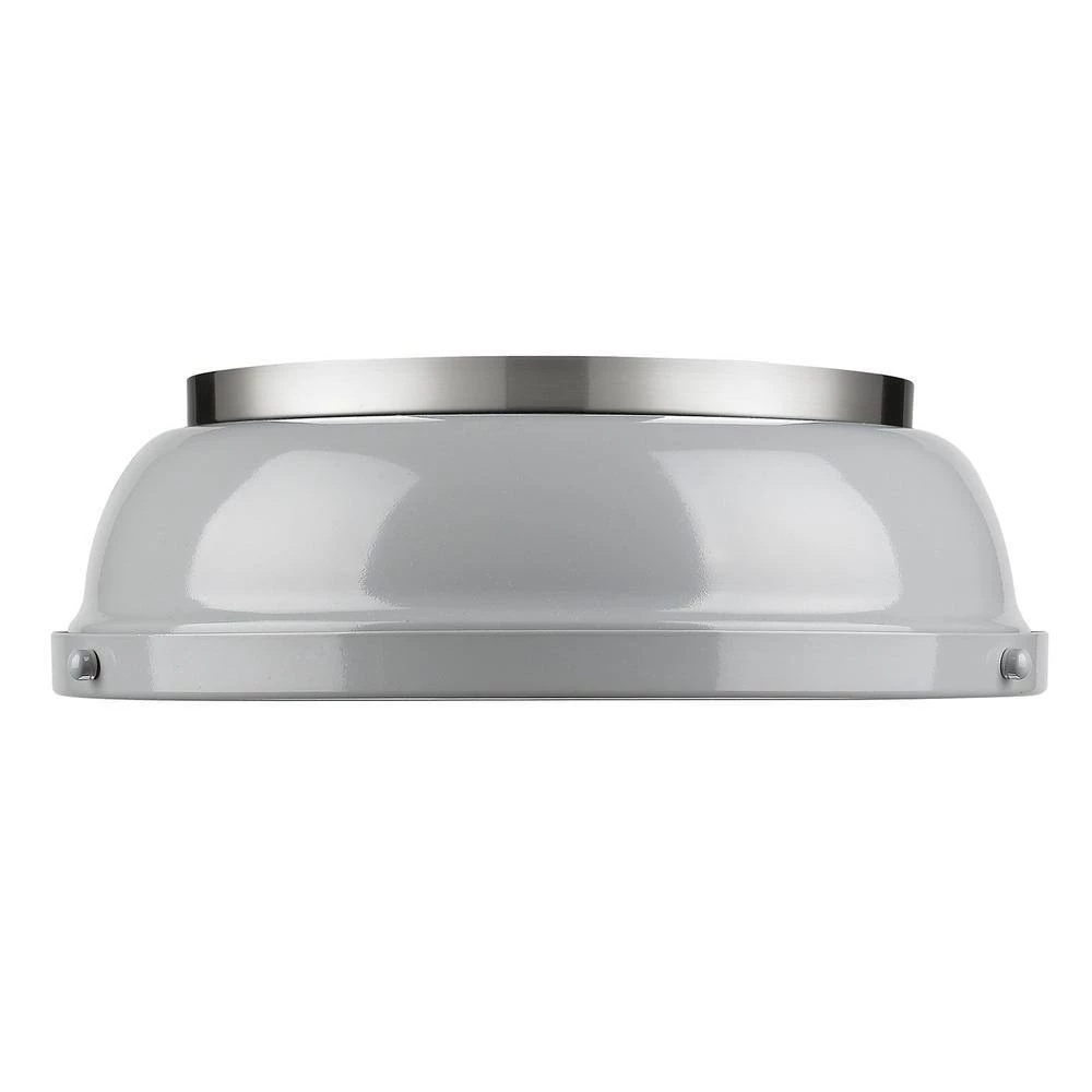 Transform the look of your room with this classic, vintage-inspired fixture by Golden Lighting. Golden Lighting’s Duncan collection is contemporary style with an industrial feel. The collection features a variety of simple, traditional silhouettes that are a nod to a bygone era. A variety of plated and painted metal shade finishes are offered in combination with durable Aged Brass, Black, Chrome or Pewter fixture bodies. The Rubbed Bronze fixtures are paired with Rubbed Bronze shades. This flush mount is perfect for modern or contemporary style home decors. It works perfectly in a kitchen, hallway or bath and is UL approved for damp locations. This soft pewter flush mount is paired with a gray shade. The shade is a soft, glossy medium gray.