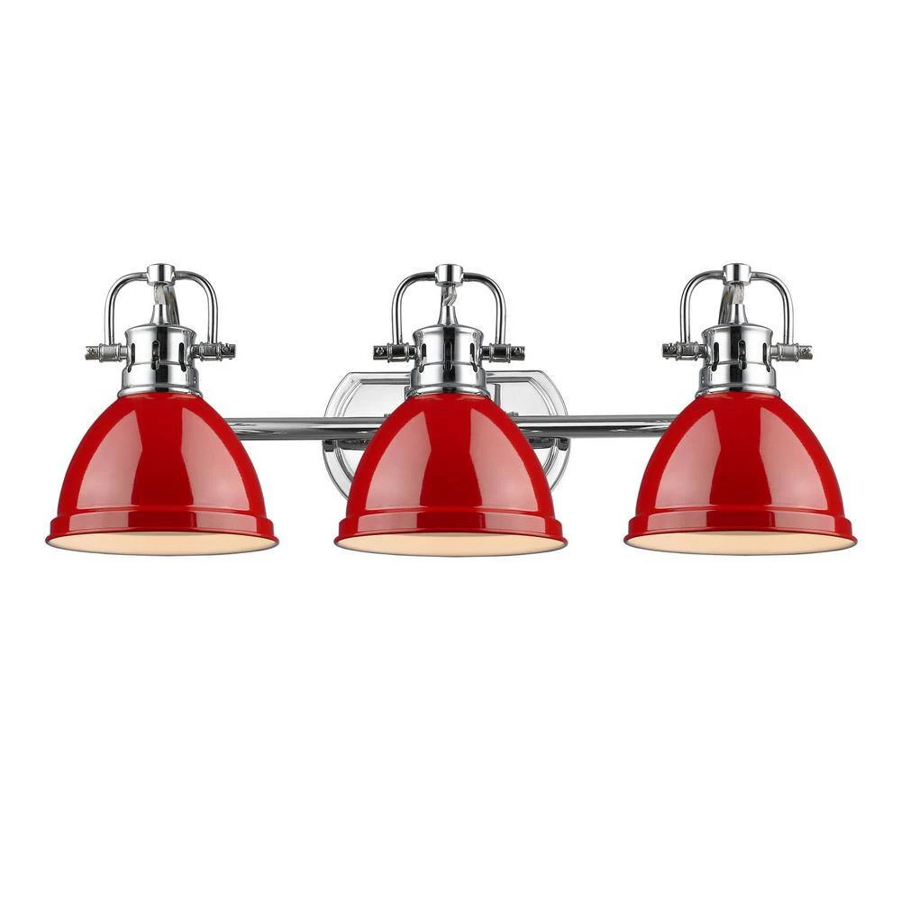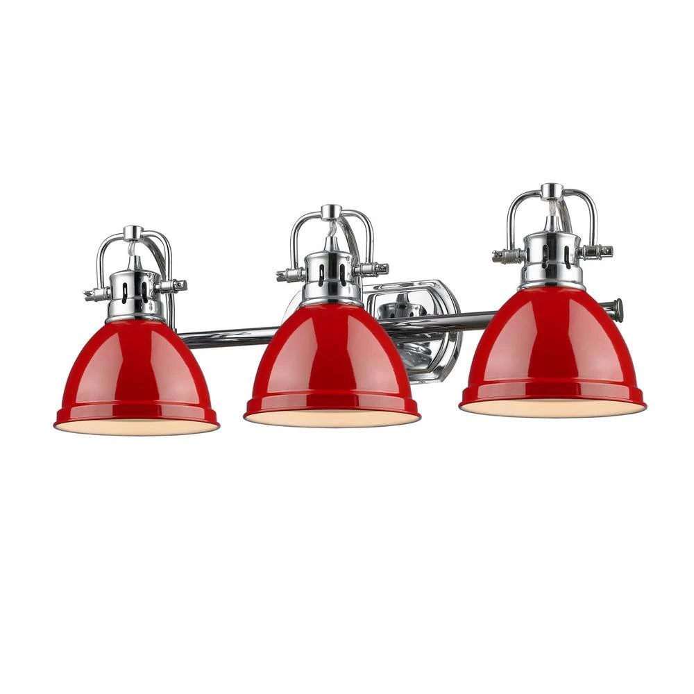 Transform the look of your room with this classic, vintage-inspired fixture by Golden Lighting. Golden Lighting’s Duncan collection is contemporary style with an industrial feel. The collection features a variety of simple, traditional silhouettes that are a nod to a bygone era. A variety of plated and painted metal shade finishes are offered in combination with durable Aged Brass, Chrome or Pewter fixture bodies. Rubbed Bronze fixtures are paired with Rubbed Bronze shades. This 3-light bath vanity is UL approved for use in a bathroom. The style is perfect for modern or contemporary home decors.
