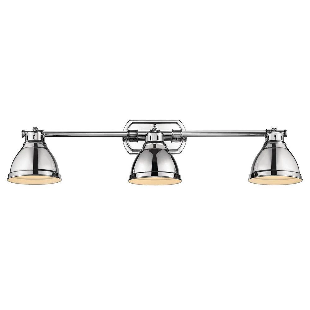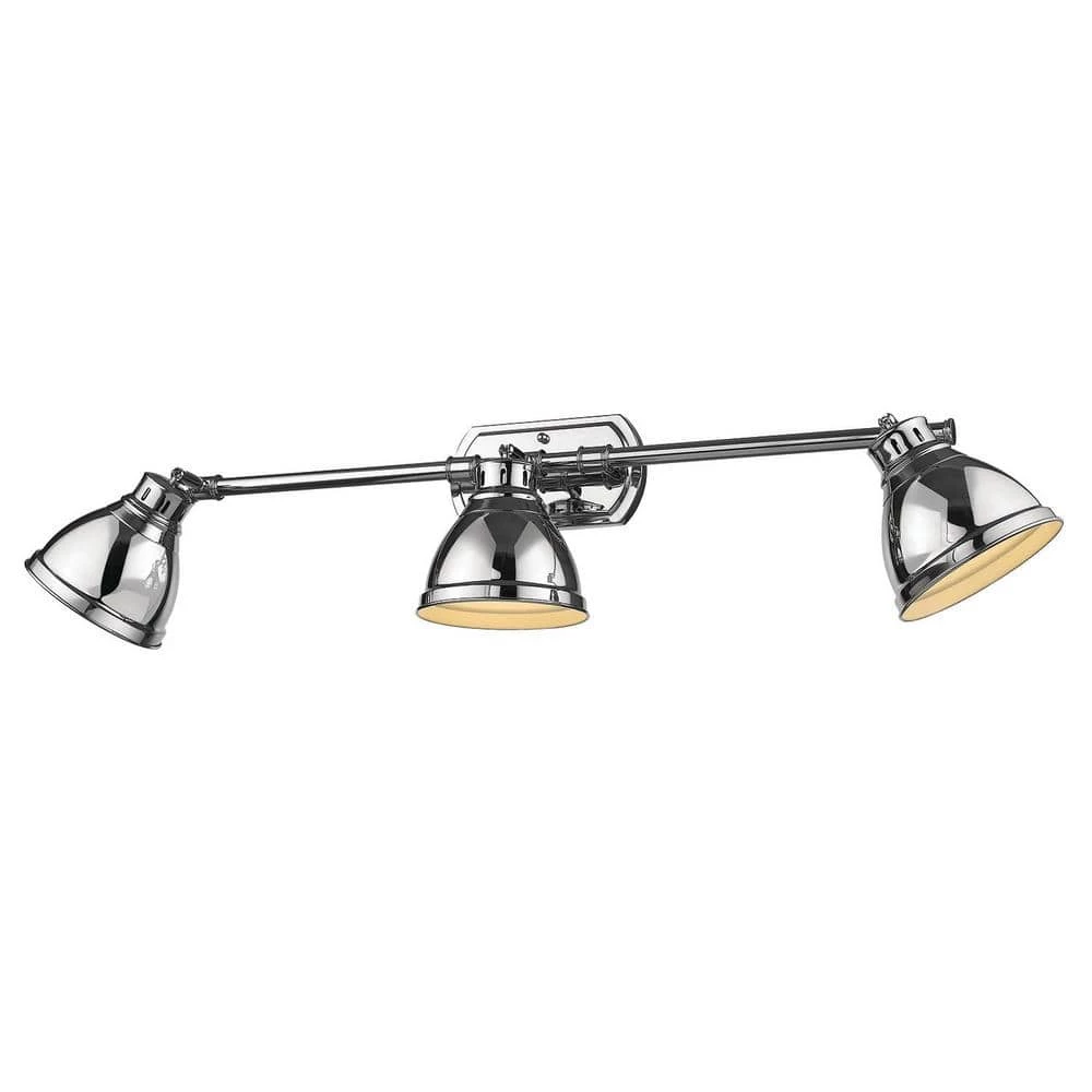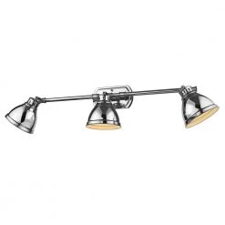 Transform the look of your room with this classic, vintage-inspired fixture by Golden Lighting. Golden Lighting’s Duncan collection is contemporary style with an industrial feel. The collection features a variety of simple, traditional silhouettes that are a nod to a bygone era. A variety of plated and painted metal shade finishes are offered in combination with durable Aged Brass, Black, Chrome or Pewter fixture bodies. The Rubbed Bronze fixtures are paired with Rubbed Bronze shades. This 3-light vanity is highly versatile and maneuverable. The swivel on the canopy moves 90° allowing the fixture to be mounted on the wall or ceiling. The fixture’s shades can also be positioned freely.