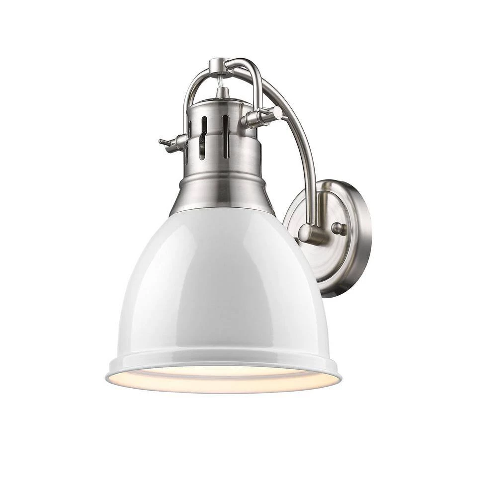 Transform the look of your room with this classic, vintage-inspired fixture by Golden Lighting. Golden Lighting’s Duncan collection is contemporary style with an industrial feel. The collection features a variety of simple, traditional silhouettes that are a nod to a bygone era. A variety of plated and painted metal shade finishes are offered in combination with durable Aged Brass, Chrome or Pewter fixture bodies. Rubbed Bronze fixtures are paired with Rubbed Bronze shades. This1 light wall sconce is perfect for modern or contemporary style home decors and works well in a hallway or bath. This sconce is UL approved for damp locations.