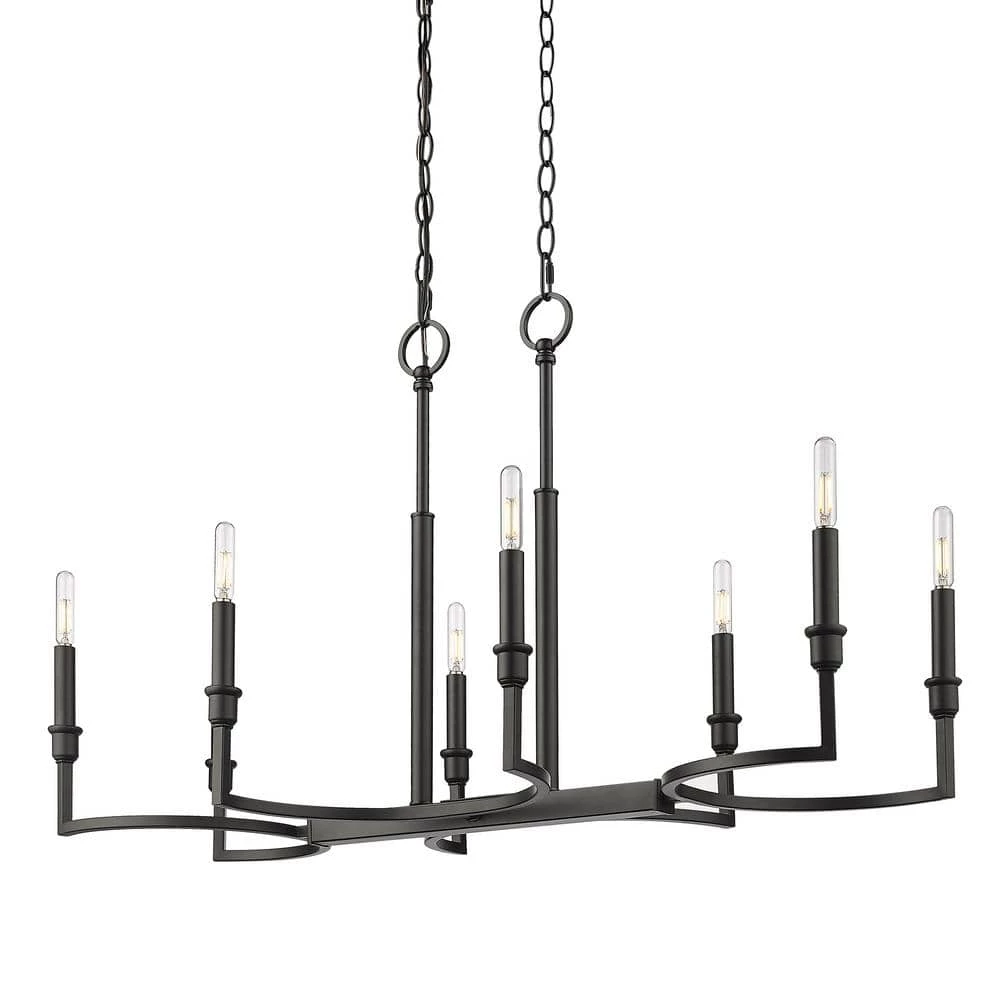 Ellyn is a collection of strikingly attractive minimalistic fixtures in a smooth Matte Black finish. Clean and transitional, this elegant design features slim candles fixed to curved arms. 2 candles are balanced on each arc for added symmetry.