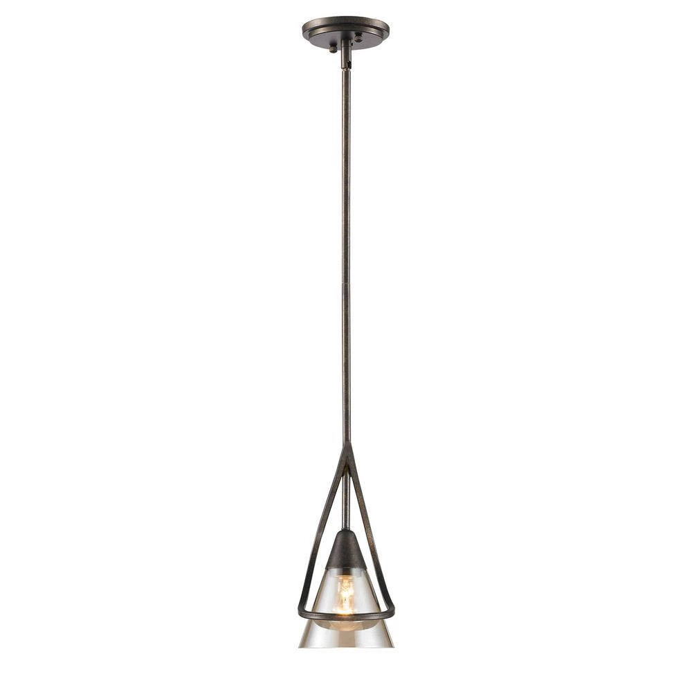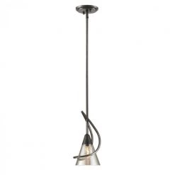 The Emmalyn collection is transitional style with a contemporary edge. The graceful scroll details appear to sweep around, encasing the conical Glass. The four-layered Burnt Sienna finish has touches of fiery bronze and copper and is complemented by lustrous, electroplated Baltic Amber Glass. The overall effect is elegant fluidity. This mini pendant is an eye-catching accent that can be used alone or arrayed in a group. Ideal for the kitchen, the mini pendant provides soft ambient downlight, illuminating a kitchen bar or countertop without interfering with activity on the surface.