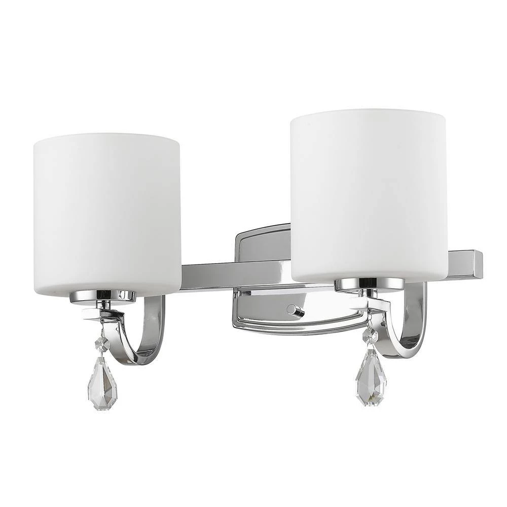 Create a simple, elegant look with lighting from our Evette Collection. These fixtures are visual standouts. The versatile, transitional design and highly-polished chrome finish works well with most decors. Large, cylindrical glass shades gracefully balance on square, modern arms while teardrop crystals dangle below. Constructed with durable, high-quality materials these fixtures are crafted to last.