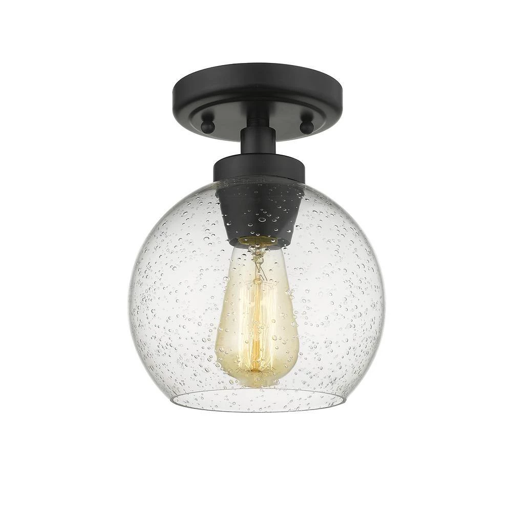A hand-painted Black finish complements the textured Seeded Glass and heightens the rustic industrial look of the Galveston Collection. These vintage-inspired fixtures have a unique convertible design that allows the fixture to be mounted with the glass facing up or down. This strikingly masculine collection is perfect for vintage farmhouse and industrial decors. This flush mount provides widespread ambient lighting.