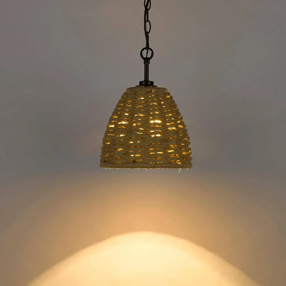 Add casual, country-cottage flair to your with Hathaway. Thick natural fiber rope is interlaced in a woven fashion to create a basket shade. A smooth, Matte Black finish creates visual contrast. Great for task lighting, bright downlight spills from the open-bottom shade.