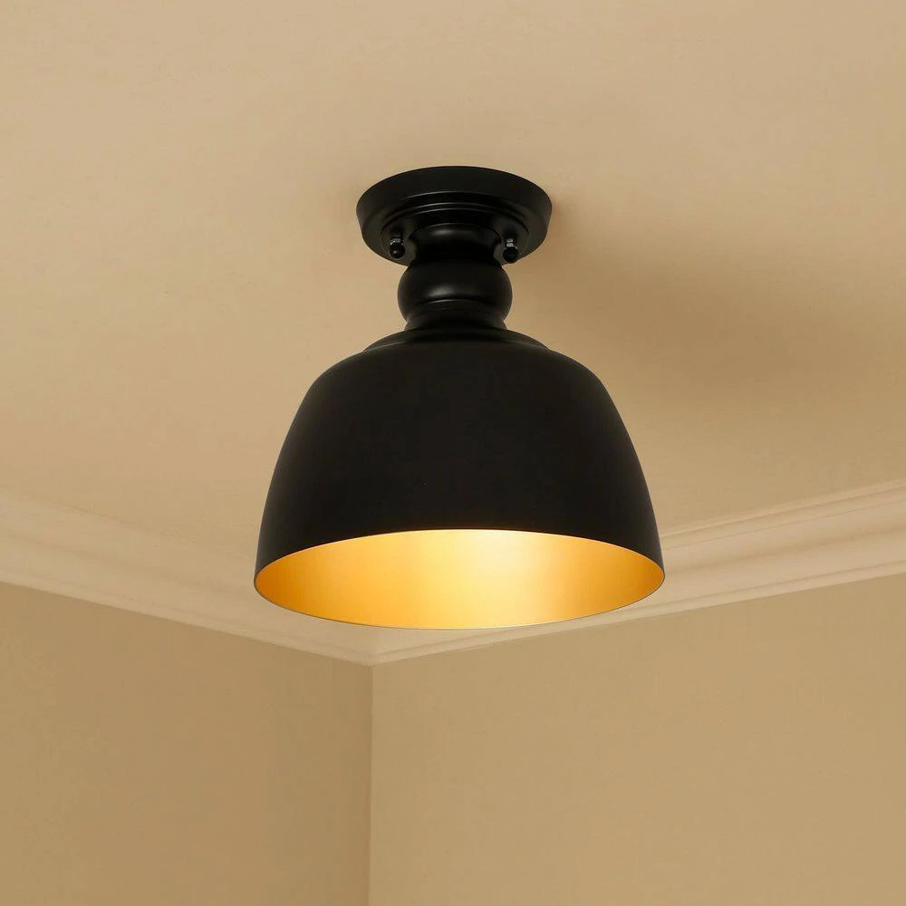 Capture authentic farmhouse charm with the Holmes Collection. These transitional metal fixtures have classic bell-shaped silhouettes that pay homage to history. Sophisticated finishes add character and reinforce the look. The interiors of the metal shades are a gold color to enhance the light quality. Place these damp-rated lights in any interior space.
