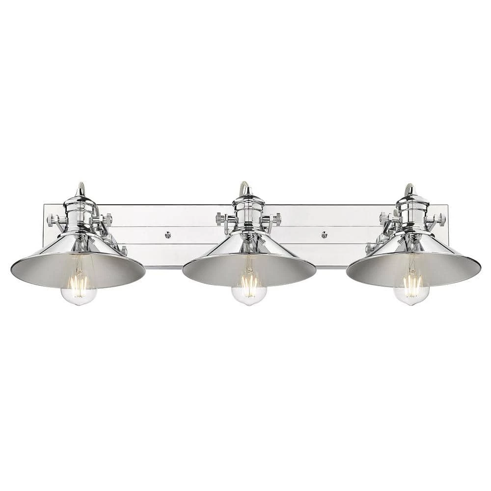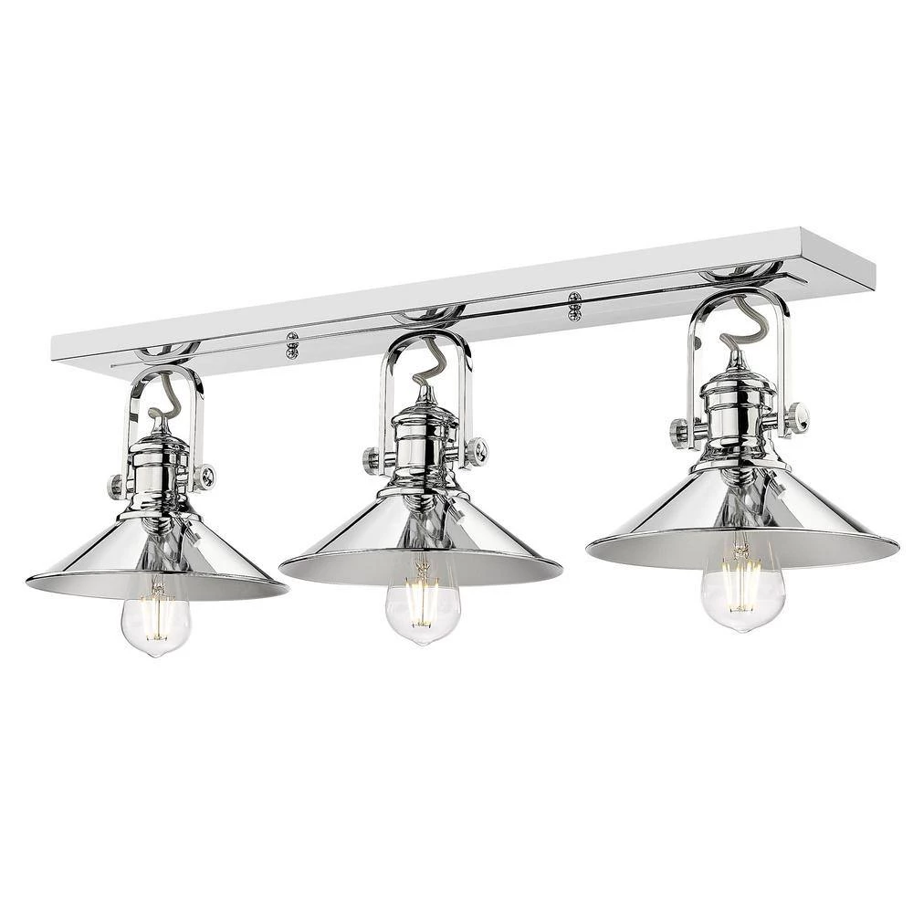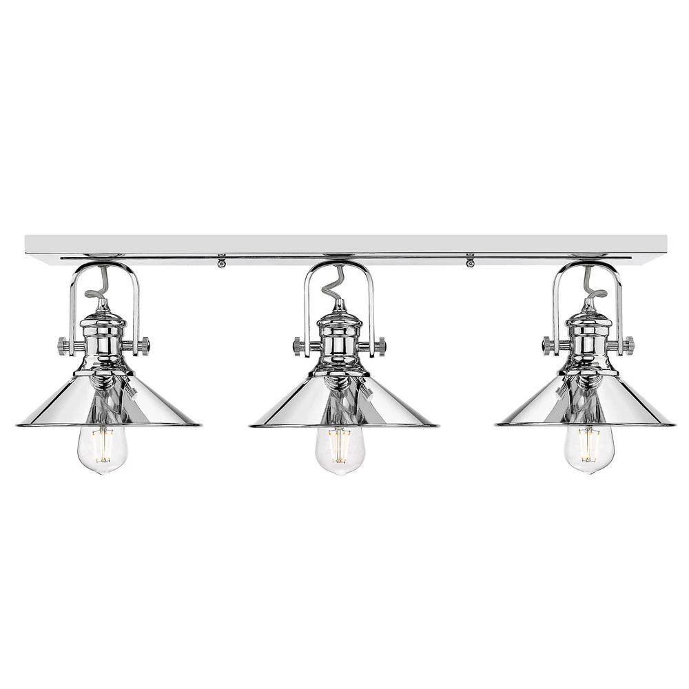 The coastal influence on the Kleine collection’s bold design is obvious. The transitional style is a combination of a traditional silhouette with a modern chrome finish. For a timeless appeal, these vintage-industrial fixtures feature pivoting truncated shades and cool retro details. The exposed bulbs are on full display. Mount the simple backplate on the wall or ceiling, and angle the lamps to suit your needs. These versatile nautical-inspired fixtures are a great fit for lots of styles.