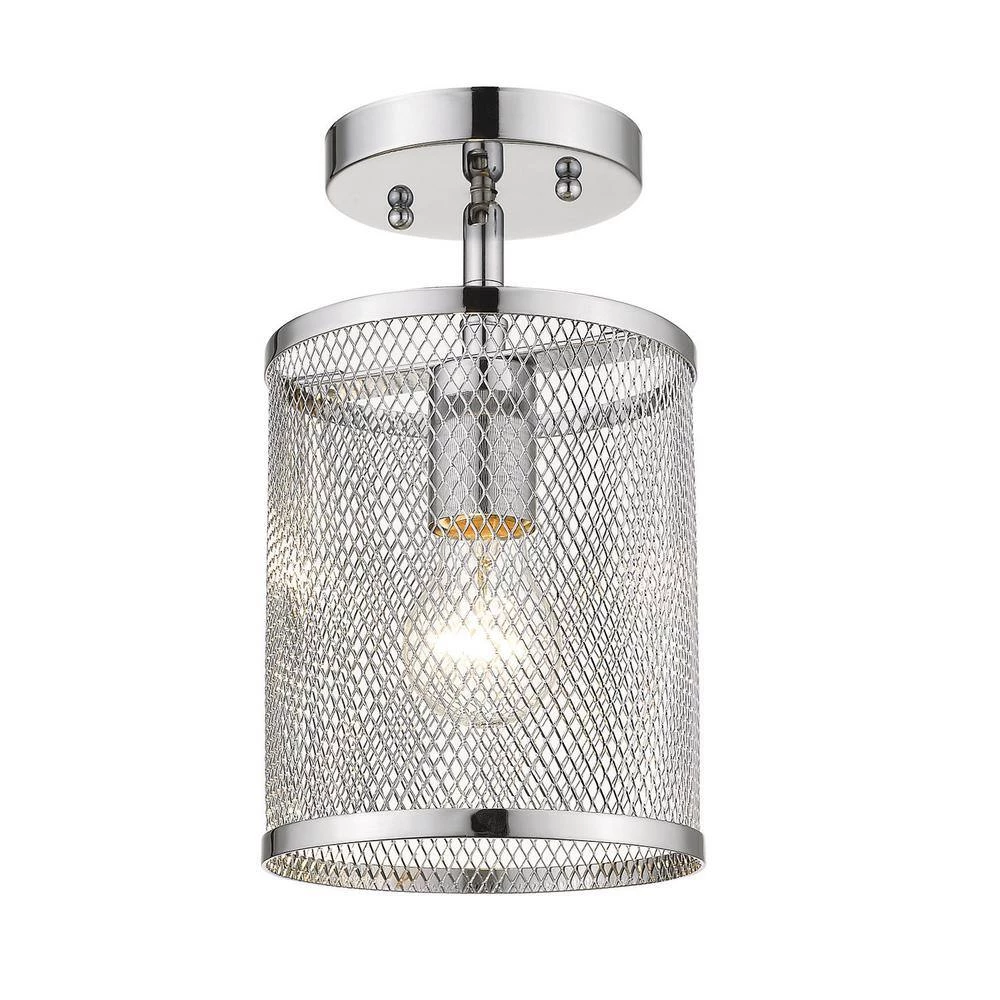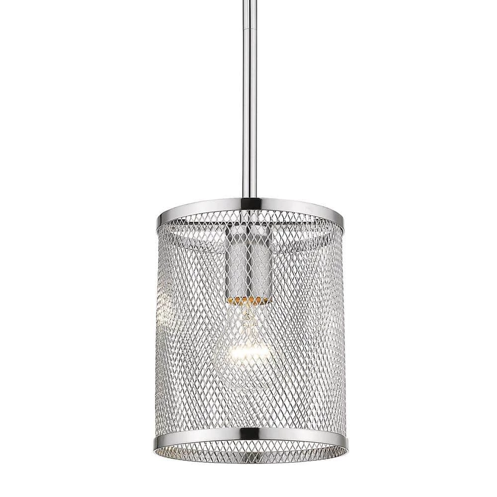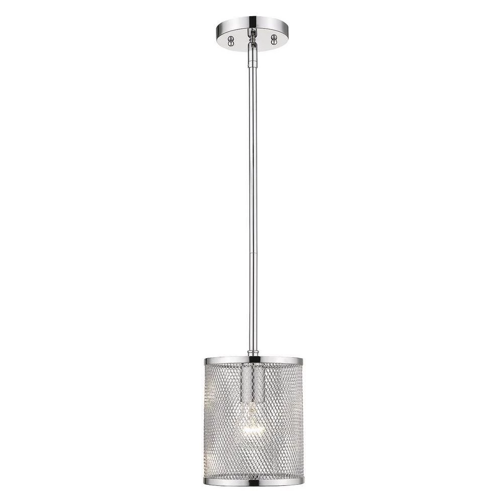 Enhance the look of your room with this stylish design. A simple light source is screened by a mesh metal drum shade finished in gleaming chrome. Framed by an optional contemporary cage, this open, industrial chic look has an airy feel. Choose between a matching chrome cage or add visual interest with the contrasting matte black option. Easily customize the height to suit your application. This mini pendant is perfect grouped over an island or bar.