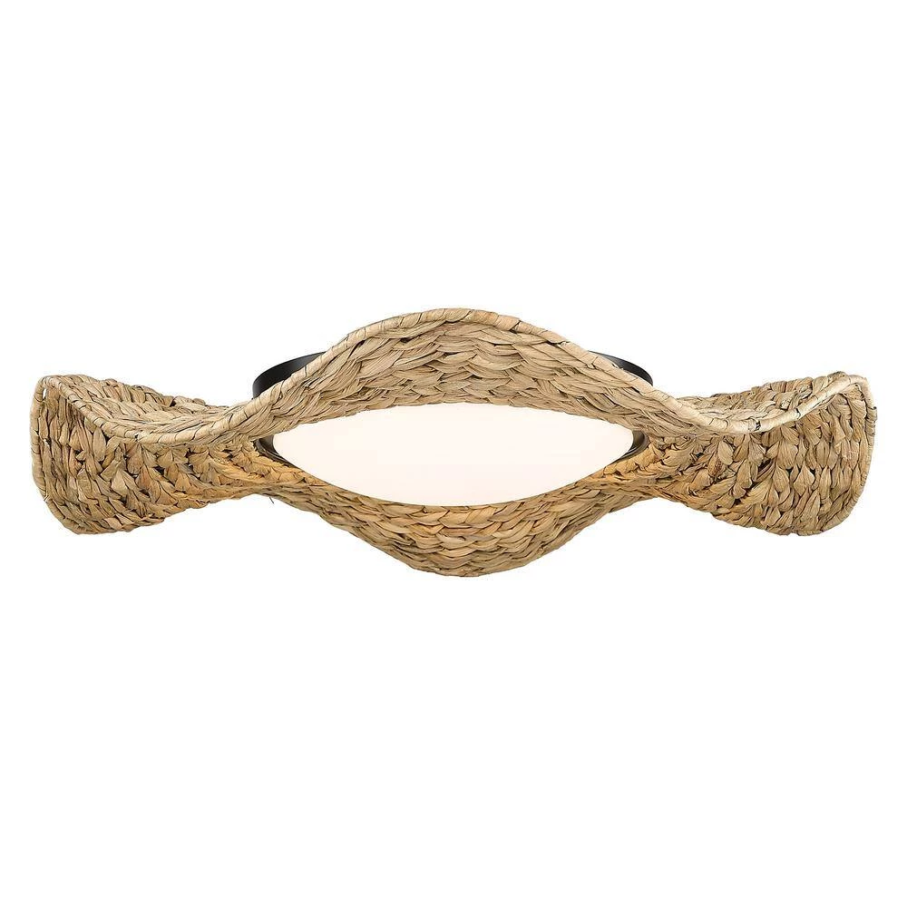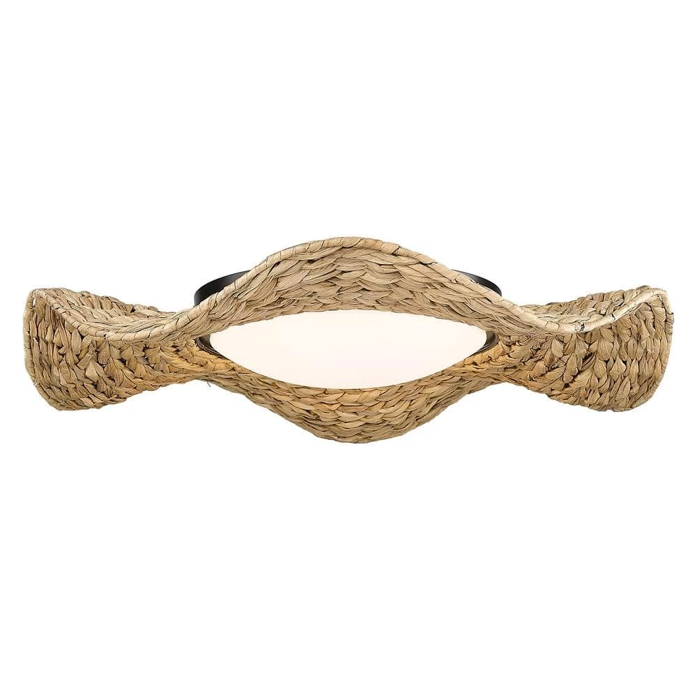 Let in summer with the coastal and casual look of Macy. Whimsical and feminine, the design is a modern and fun way to freshen your decor. Macy is nature-inspired and features a woven shade accent composed of natural sweet grass. The hand-woven traditional basket weave pattern is slightly rustic. Reminiscent of a floppy hat on a breezy day, it has an undulating shape. At the center, a round opal glass shade diffuses the brightness of the LED light source. The look of the natural fibers and Matte Black hardware coordinates well with contemporary rattan furnishings. Hang this damp-rated, close-to-ceiling flush mount anywhere in your home.