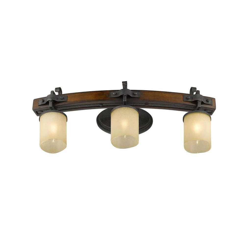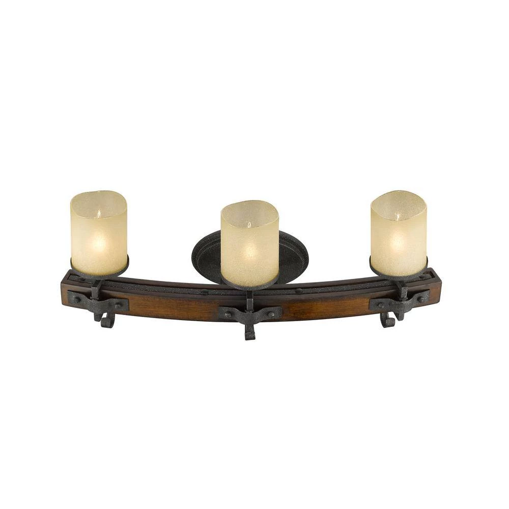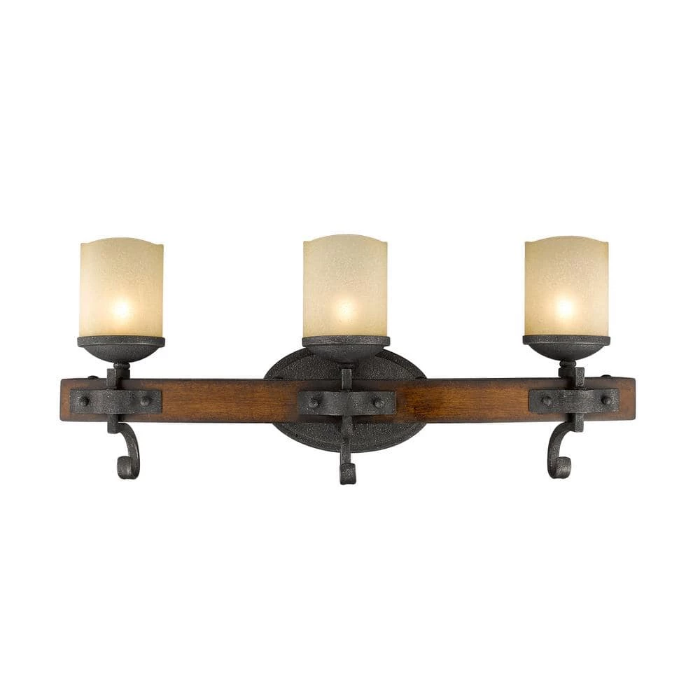 Magnificently traditional, Golden Lighting’s Madera collection blends antique tones and patinas that speak of a rich Spanish heritage. An inky Black Iron finish on the hand-forged metal scrollwork brings out the details and gives a lightly weathered look. Solid wood accents bring a casual, rustic feel to the design, and hand-painted Toscano Glass gives an air of authenticity. This 3 light bath vanity is UL approved for damp locations and is ideal over a vanity or mirror.