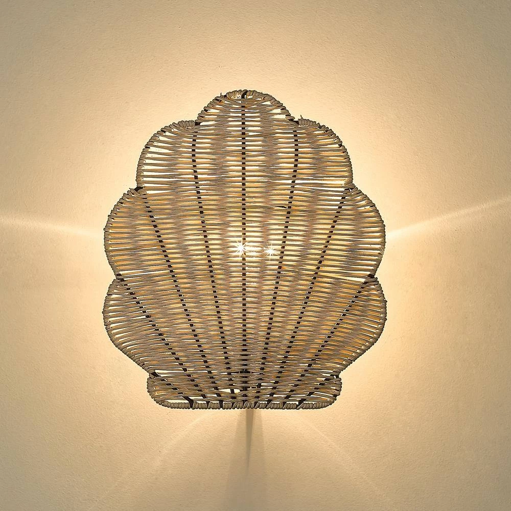 Create a lovely ambiance with the simple beauty of the Malia sconce. The unique scallop design flatters casual coastal and eclectic spaces. In this nautical-inspired style, authentic natural wicker fibers are bound to a metal frame with soft light passing through. Backlit by a partially exposed candelabra, the sconce creates an alluring glow. A smooth Matte Black finish contrasts the light color of the natural rattan fiber.