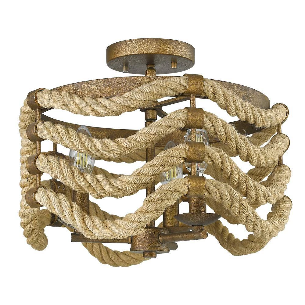 Inspired by nautical elements, Marissa easily adds coastal styling to a space. Authentic rope accents enhance the fixture’s rustic quality while the collection’s burnished chestnut finish adds complementary warmth. Designed for damp locations, this Marissa semi-flush is the perfect addition to any seaside-inspired kitchen or bath.