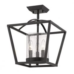 With seeded glass and a contemporary finish, the simplicity of the Mercer Collection is suitable for transitional to modern interiors. Bold, graphic lines in matte black create the open cage design. The fixtures are available in multiple accent colors to match or contrast the smooth cages. This Semi-Flush provides widespread ambient lighting.