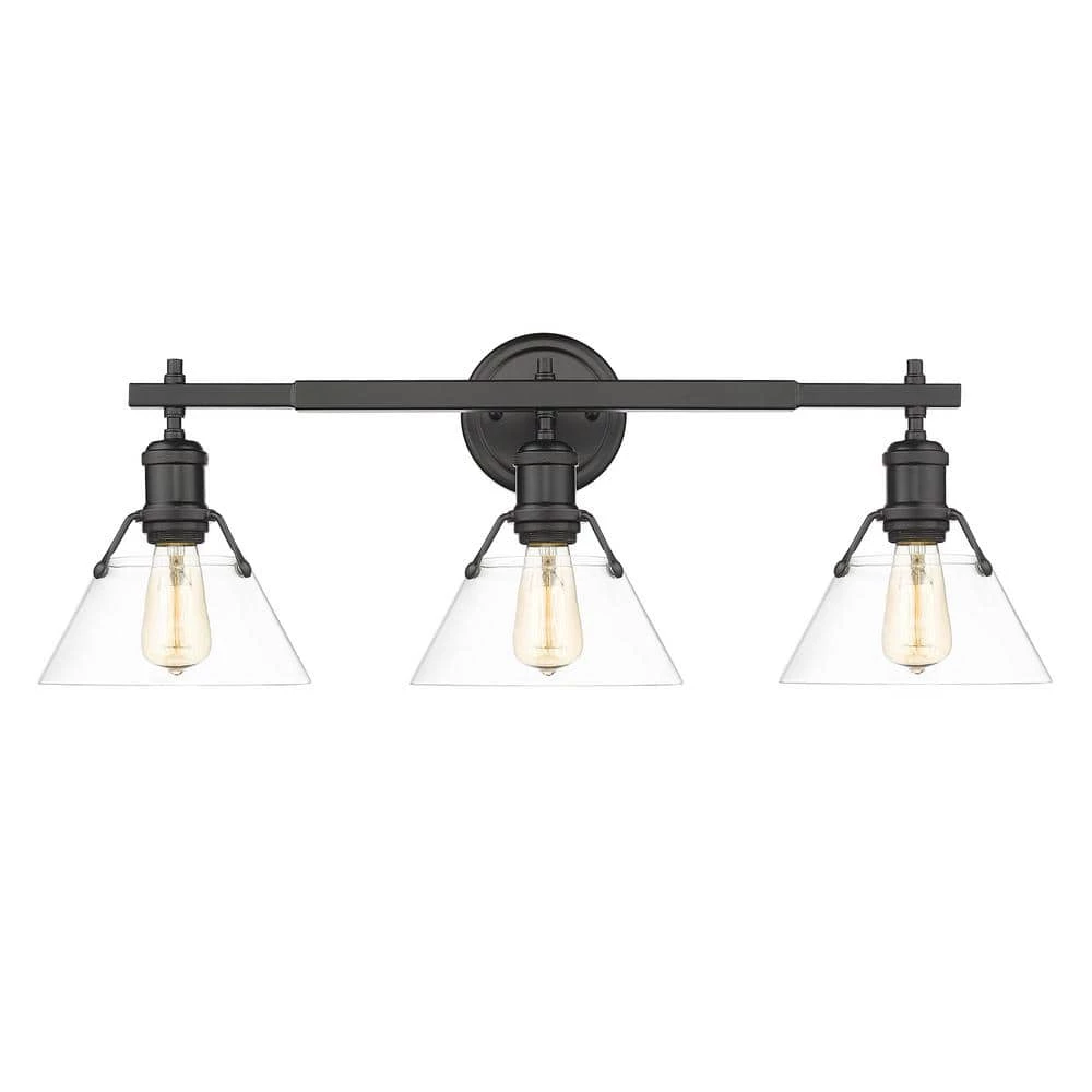 Orwell is an extensive assortment of industrial style fixtures. The beauty and character of the collection are in the refined details. This transitional series works well in a variety of settings. Partial shades shield the eyes from possible hot spots, while the open tops tease onlookers with a view of the sockets and bulbs. The design allows light and heat to escape from above and below the metal shades, providing both task and ambient lighting. Edison bulbs are recommended to complete the vintage, industrial look of the fixtures. A choice-selection of finish and shade color combinations heighten the appeal of the series. Opal glass and clear glass shades are available for bath fixtures. Single pendants are suspended from woven fabric cords while multi-light fixtures are rod-hung.