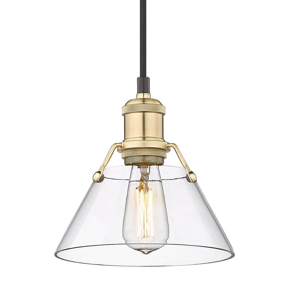 Orwell is an extensive assortment of industrial style fixtures. The beauty and character of the collection are in the refined details. This transitional series works well in a variety of settings. Partial shades shield the eyes from possible hot spots, while the open tops tease onlookers with a view of the sockets and bulbs. The design allows light and heat to escape from above and below the metal shades, providing both task and ambient lighting. Edison bulbs are recommended to complete the vintage, industrial look of the fixtures. A choice-selection of finish and shade color combinations heighten the appeal of the series. Opal glass and clear glass shades are available for select fixtures. Single pendants are suspended from woven fabric cords while multi-light fixtures are rod-hung.