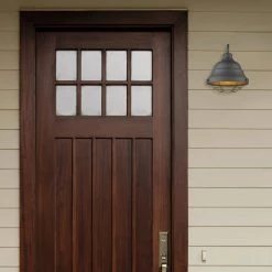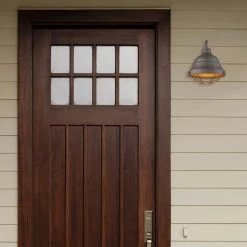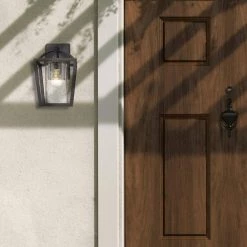 Mercer 1-Light Natural Black Seeded Glass Hardwired Outdoor Wall Lantern Sconce by Golden Lighting