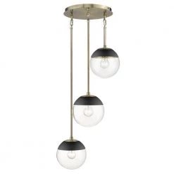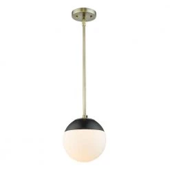 Dixon 1-Light Aged Brass with Opal Glass and Black Cap Mini Pendant by Golden Lighting