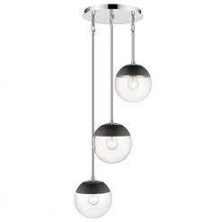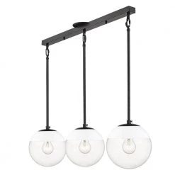 Dixon 3-Light Linear Pendant in Black with Clear Glass and White Cap by Golden Lighting