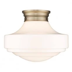 Ingalls 16.0 in. 1-Light Modern Brass Vintage Milk Glass Semi-Flush Mount by Golden Lighting