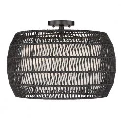Everly 19 in. 4-Light Matte Black Semi-Flush Mount with Black Rattan Shade by Golden Lighting