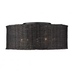 Erma 22.5 in. 5-Light Matte Black Flush Mount with Black Wicker Shade by Golden Lighting