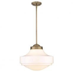 Ingalls 1-Light Modern Brass Vintage Milk Glass Standard Pendant Light by Golden Lighting