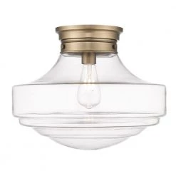 Ingalls 16.0 in. 1-Light Modern Brass Clear Glass Semi-Flush Mount by Golden Lighting