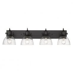 Hines 6.88 in. 1-Light Pewter with Seeded Glass Semi-Flush Mount by Golden Lighting