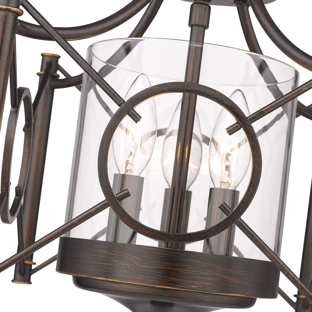 Quincy’s stately appearance fits well in transitional homes. The decorative metalwork features geometric details. Clear glass shades shield the bulbs within while allowing widespread illumination. The Cordoban Bronze finish features hints of gold which adds a regal feel.