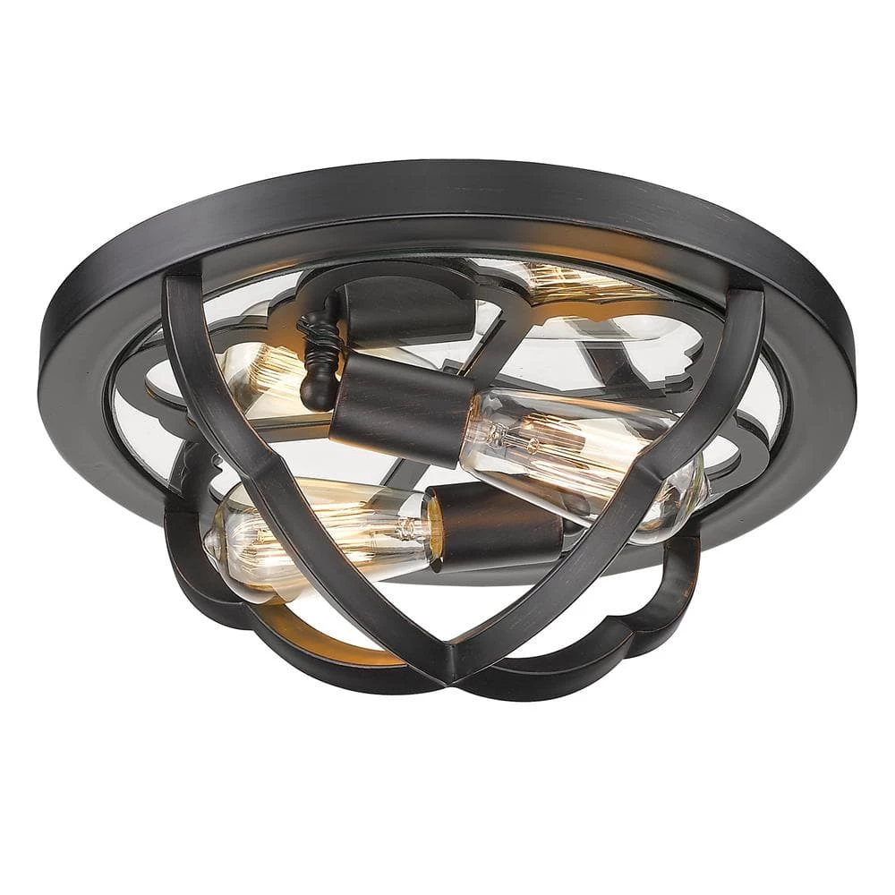 The world famous Smithsonian Castle, in Washington, DC is a picturesque castle composed of red sandstone and Medieval-Revival architectural details. Details like the large circular window that sits high above its northern entrance. This north-facing window was strategically placed to catch the light of the sun. The beautiful window is dissected by a bold patterned design. The window’s concept and appearance inspired our Smithsonian Saxon Collection. Composed of durable steel and finished in a smooth Aged Bronze finish, these beautiful fixtures are available in various “window-inspired” silhouettes. Evocative of the castle’s window, all of the canopies and back plates in the collection feature reflective mirror glass segmented by the same pattern. Capture some of the beauty of the Smithsonian Castle for your home with this unique collection. This Flush Mount provides widespread ambient lighting.