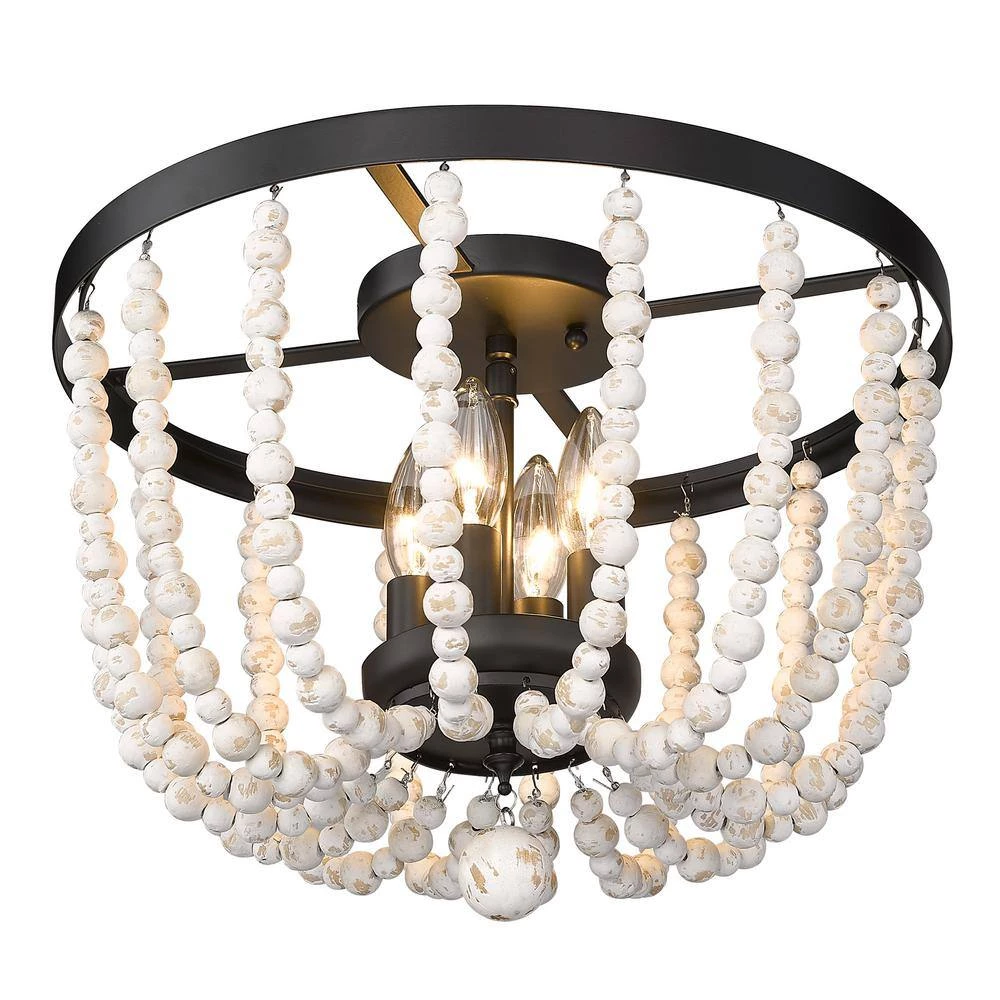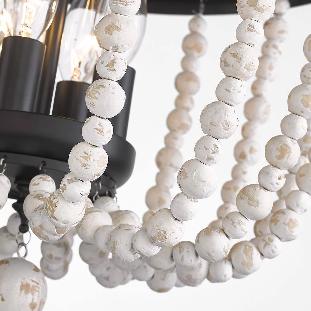 Naturally chic, Tabitha’s distinctive style complements eclectic and vintage-inspired decor. with neutral-tone finishes and distressed wood accents, Tabitha’s grounded in its Bohemian roots. Airy, authentic, chippy wood beads gently cascade from the bold, contemporary, yet elegant hoop frame. A smooth matte black finish completes the overall look. Use the series to dress up any country farmhouse or cottage-chic interior.