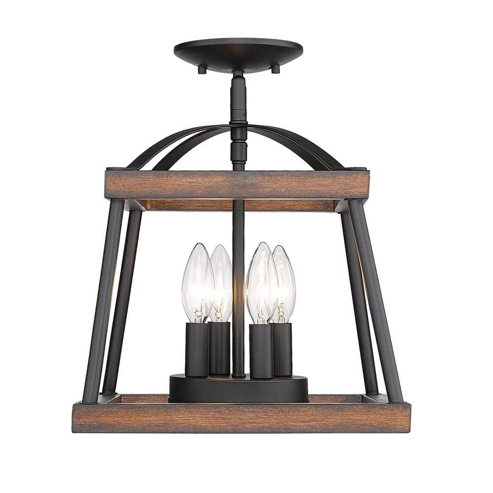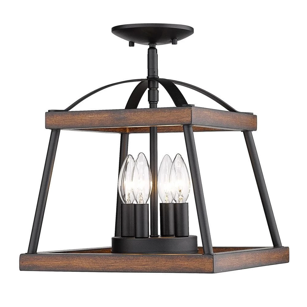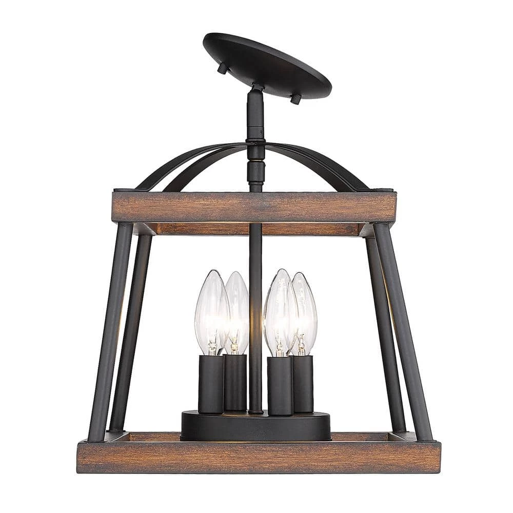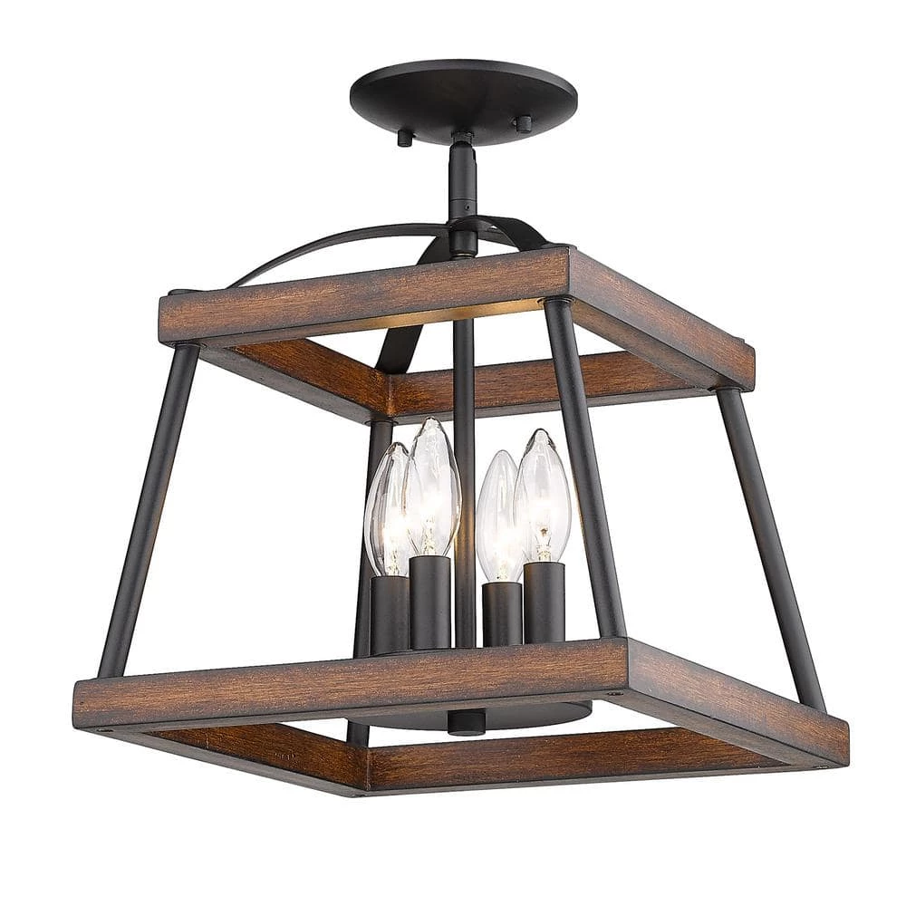 With authentic wood accents and tapered square silhouettes, Teagan is the epitome of contemporary rustic charm. Offered with two genuine wood finish options; a light Gray Harbor Wood and a red Rustic Oak finish, this collection is perfect for traditional to modern decors. The lightly textured Natural Black finish on the frame is versatile and contrasts the lighter wood stains. The Teagan Collection enhances the casual elegance of country cottage and modern farmhouse styles. This semi-flush can be mounted close-to-ceiling.