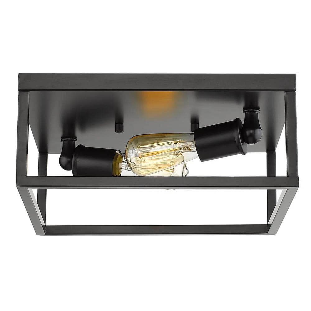 Wesson is a clean contemporary collection with a Smooth black finish. The industrial look is enhanced by the exposed medium-based bulbs inside the square tubing of the open, geometric cages. Complete the modern, rustic look by installing Edison Bulbs. This flush mount is perfect for hallways and foyers.